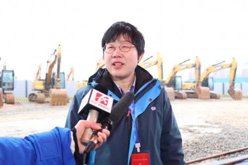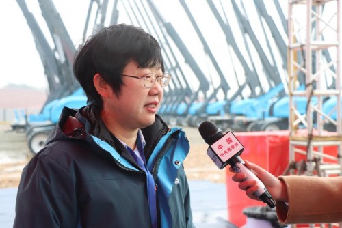 星邦智能總經(jīng)理許紅霞接受開工活動現(xiàn)場媒體采訪