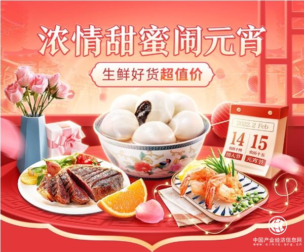 情人節(jié)燭光晚餐,少不了撒了海鹽的牛排、堆成滿捧的車厘子花束;元宵節(jié)家庭聚餐,更離不開裹著熱湯的新老式湯圓、鮮甜可口的各式海鮮果蔬……節(jié)日儀式感,提升消費者對生鮮食材的購買興趣。