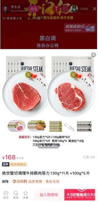 為擴大活動影響力,濃情蜜意鬧元宵活動聯(lián)合羅永浩直播間打造專場福利,通過牛排商品立減10元補貼,為用戶的浪漫大餐多加一道源頭好菜。