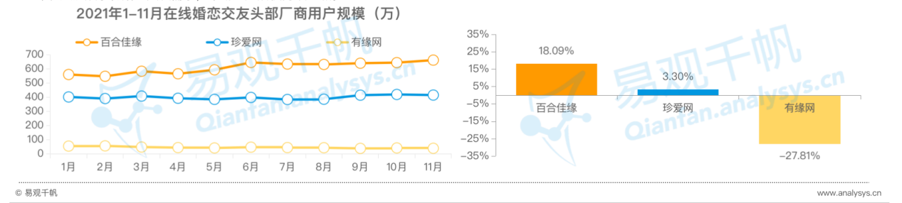 《報(bào)告》顯示:中國在線婚戀交友行業(yè)月度活躍用戶在2021年下半年顯著增長(zhǎng)至1200萬以上,1至11月的復(fù)合增長(zhǎng)率達(dá)2.02%。