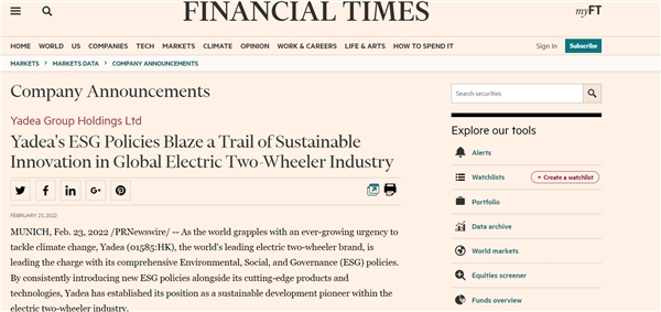 多家海外媒體報(bào)道雅迪電動(dòng)車ESG最高評(píng)級(jí)獎(jiǎng)?wù)?/p>