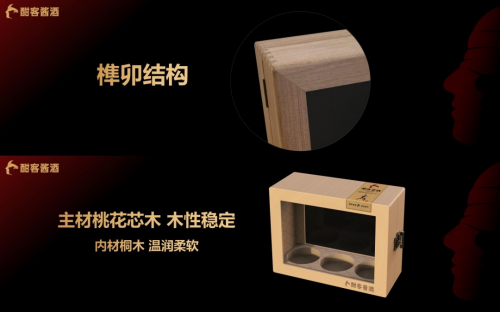 禮盒采用中國(guó)傳統(tǒng)卯榫結(jié)構(gòu)設(shè)計(jì),主材使用桃花芯木,內(nèi)材使用桐木,堅(jiān)固穩(wěn)定,低調(diào)素雅。禮盒采用中國(guó)傳統(tǒng)廣鎖設(shè)計(jì),簧片結(jié)構(gòu),雕刻精美動(dòng)物紋飾,禮盒內(nèi)印刷防偽花紋。同時(shí),每一件“酣客老酒禮盒”拍品,都有著專屬的收藏編碼。