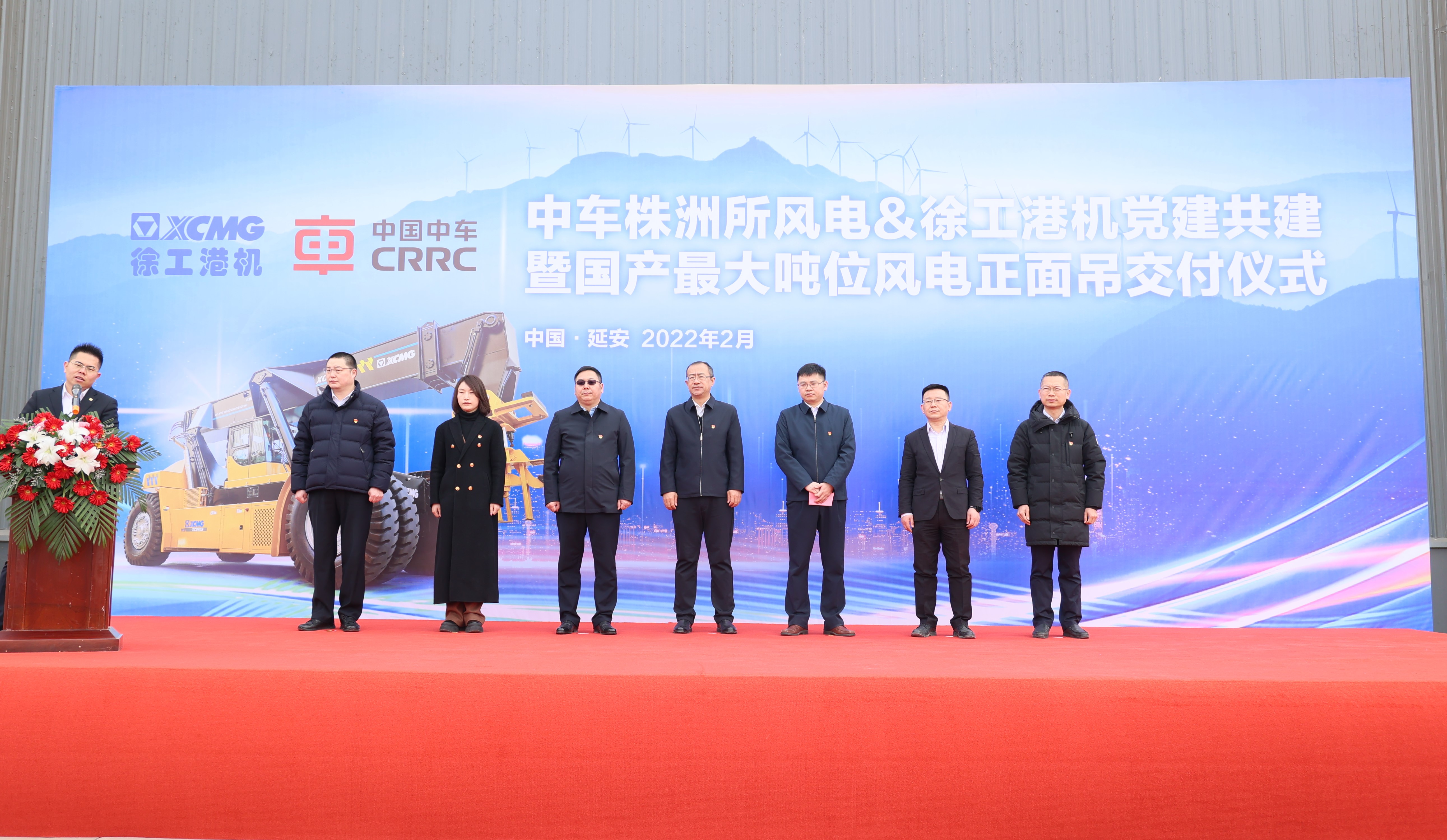 在經(jīng)過(guò)前期研發(fā)合作后,2月28日,中車株洲所風(fēng)電&徐工港機(jī)黨建共建暨國(guó)產(chǎn)最大噸位風(fēng)電正面吊交付儀式在陜西延安舉行。延安市高新區(qū)黨工委委員、管委會(huì)副主任丁許軍,中車株洲所風(fēng)電副總經(jīng)理、黨委副書記、紀(jì)委書記吳昌云,徐工港機(jī)副總經(jīng)理、黨委副書記陳相奇等出席儀式,與現(xiàn)場(chǎng)嘉賓、用戶代表、媒體共同見(jiàn)證這一里程碑性時(shí)刻。