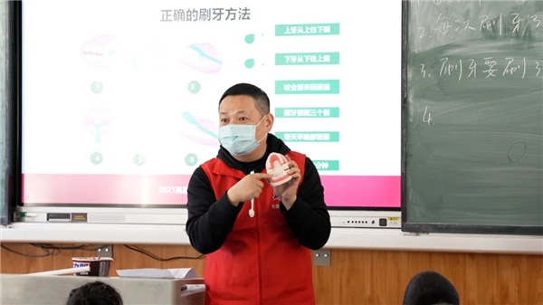 (薇美姿集團(tuán)董事總經(jīng)理曹瑞安給學(xué)生開展口腔健康科普課堂)