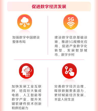 報(bào)告中提到,促進(jìn)數(shù)字經(jīng)濟(jì)發(fā)展。加強(qiáng)數(shù)字中國建設(shè)整體布局。建設(shè)數(shù)字信息基礎(chǔ)設(shè)施,推進(jìn)5G規(guī)?;瘧?yīng)用,促進(jìn)產(chǎn)業(yè)數(shù)字化轉(zhuǎn)型,發(fā)展智慧城市、數(shù)字鄉(xiāng)村。加快發(fā)展工業(yè)互聯(lián)網(wǎng),培育壯大集成電路、人工智能等數(shù)字產(chǎn)業(yè),提升關(guān)鍵軟硬件技術(shù)創(chuàng)新和供給能力。完善數(shù)字經(jīng)濟(jì)治理,釋放數(shù)據(jù)要素潛力,更好賦能經(jīng)濟(jì)發(fā)展、豐富人民生活。