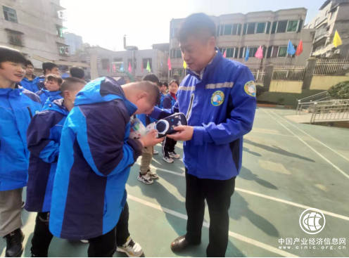 王鵬飛先生為孩子們發(fā)放水彩筆