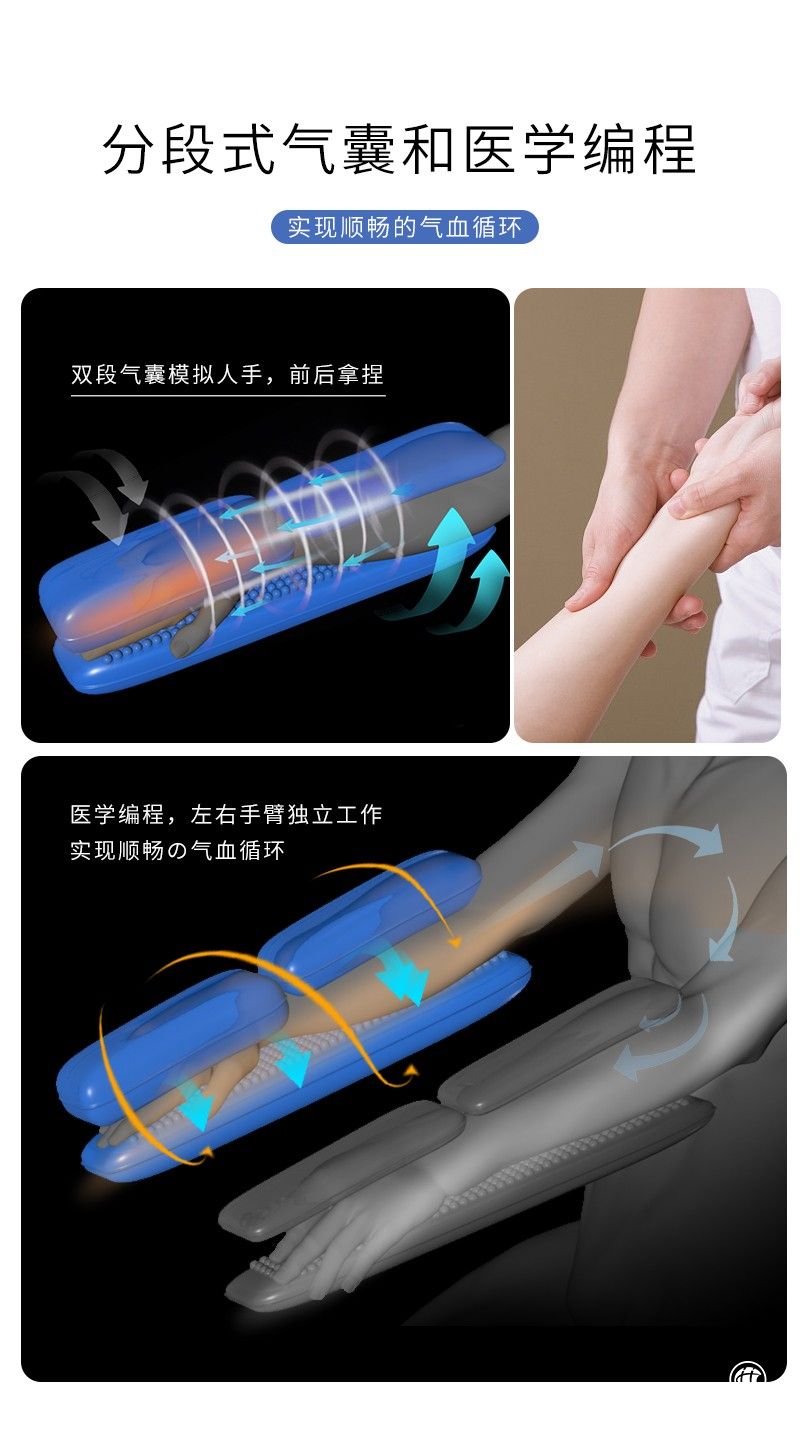 這樣的程序設(shè)計(jì)不僅極大促進(jìn)氣血循環(huán),還能防止手臂被同時夾住緊急時,無法停止按摩椅造成的安全隱患。更復(fù)雜豐富的按摩手法得以實(shí)現(xiàn),且力度控制的更加精準(zhǔn),悶勁十足爽而不痛。