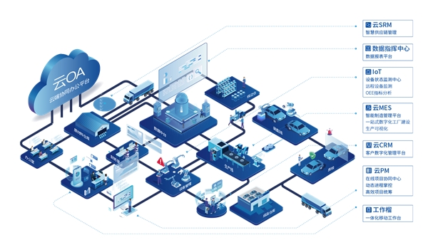 蒲惠創(chuàng)新性引入工業(yè)SaaS技術(shù),搭建的機(jī)械制造工業(yè)互聯(lián)網(wǎng)平臺以云MES(生產(chǎn)制造管理)為起點,匯集涵蓋產(chǎn)、供、銷、人、財、物全業(yè)務(wù)場景應(yīng)用的工業(yè)SaaS軟件,為中小制造企業(yè)提供一系列SaaS云服務(wù)。目前,蒲惠平臺已囊括自主研發(fā)的云MES(生產(chǎn)制造管理)、OA(協(xié)同辦公管理)、CRM(客戶關(guān)系管理)、PM(項目管理)等產(chǎn)品,未來還將延伸到CAD(制圖軟件)等領(lǐng)域,通過不斷擴(kuò)大和豐富軟件品類,形成全方位服務(wù)中小企業(yè)的SaaS軟件矩陣。