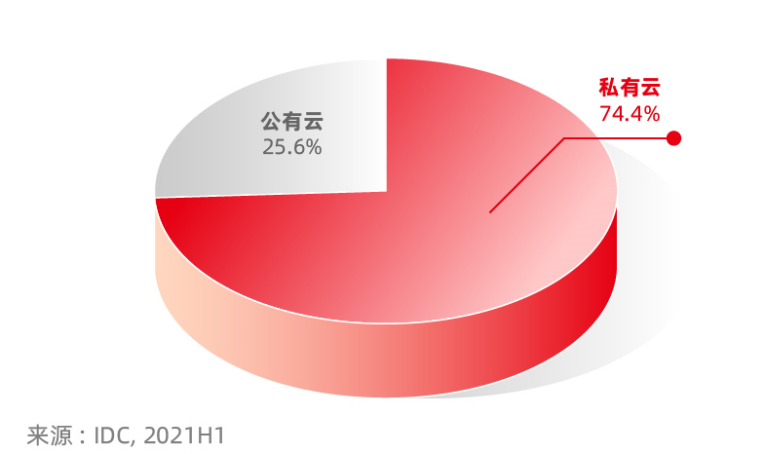 應(yīng)用平臺(tái)化云服務(wù)提供商注重多云的適配,能夠幫助企業(yè)把應(yīng)用與多云做融合,把企業(yè)的已有IT資產(chǎn)成功地整合到一個(gè)平臺(tái)上,方便企業(yè)能夠在不同的云平臺(tái)上做快速的切換和適配。其中,私有云仍占據(jù)絕對(duì)優(yōu)勢,占比高達(dá)74.4%