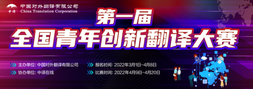 此外,由中宣部下屬中國出版集團(tuán)公司成員單位中國對外翻譯有限公司主辦,中譯在線協(xié)辦的第一屆“全國青年創(chuàng)新翻譯大賽”也將于2022年4月8日于“賽氪”平臺上完成報名。此項賽事以喚起當(dāng)代青年對英語學(xué)習(xí)重要性的認(rèn)識,增加大學(xué)生就業(yè)優(yōu)勢,推動國際化、復(fù)合型人才發(fā)展為目的,同時,為促進(jìn)我國翻譯教育事業(yè)的發(fā)展和專業(yè)人員翻譯水平的提高,調(diào)動廣大翻譯愛好者尤其是高等院校在校大學(xué)生提升翻譯及語言技能應(yīng)用的積極性而舉辦。此項比賽除大學(xué)生外,其他社會人員也可以進(jìn)行報名參與,大賽的冠軍可以直接進(jìn)入主辦單位——中國對外翻譯有限公司進(jìn)行實習(xí)。