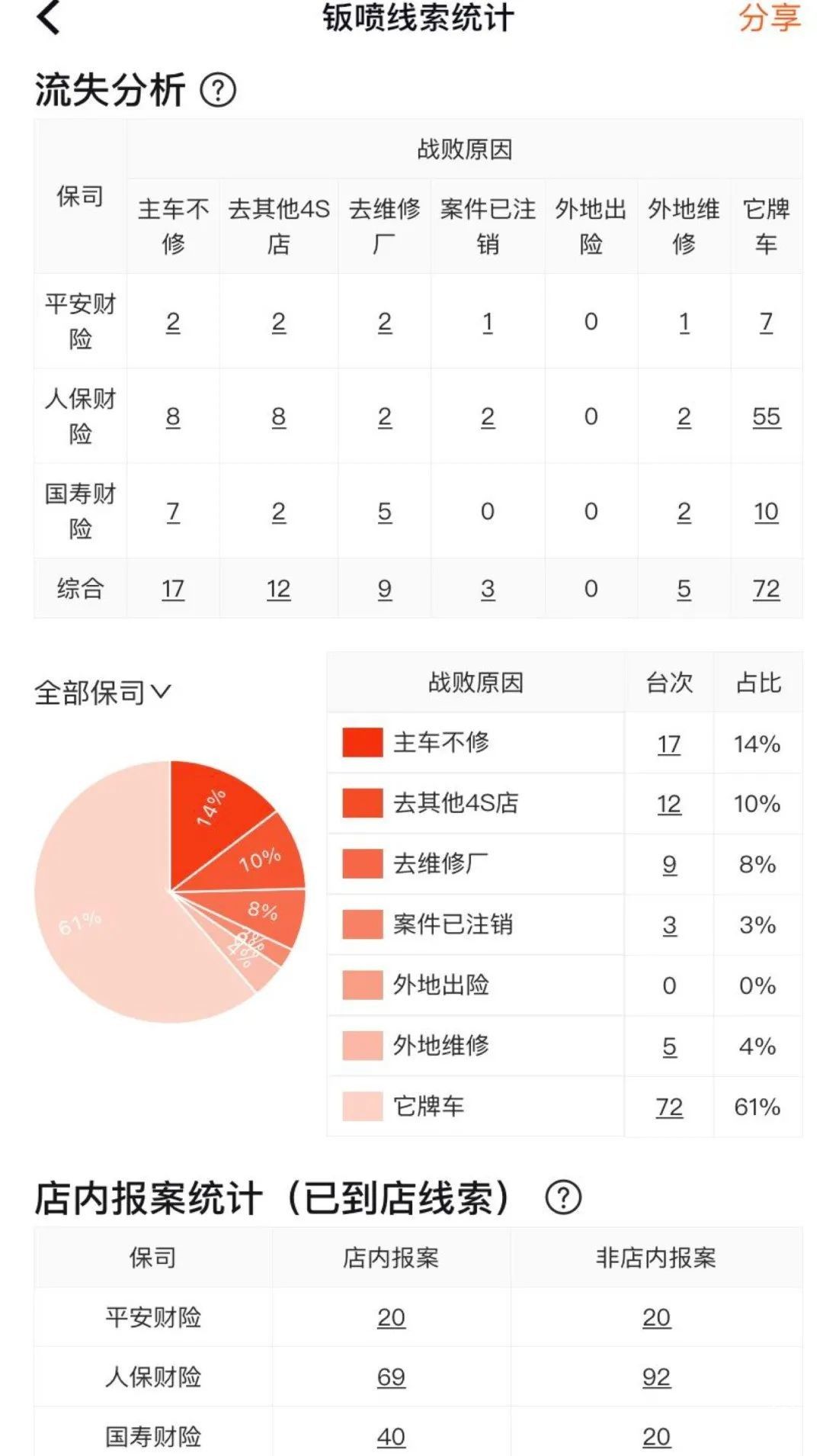 車百靈之鈑噴管家和車百靈之保險管家會根據(jù)用戶的機電活躍度、鈑噴活躍度和保險活躍度綜合判斷,為店內(nèi)提供車主畫像特征;系統(tǒng)可以定期生成“產(chǎn)保比”、“滿期賠付”等報告,幫助車商搶占保費博弈主動權(quán);車百靈之鈑噴管家還可以幫助車商主動發(fā)現(xiàn)客戶商機,并綜合車百靈之保險管家的數(shù)據(jù)提供交叉營銷方案,在方案執(zhí)行后針對轉(zhuǎn)化效果智能調(diào)整營銷手段,賦能車商實現(xiàn)多維收入的提升。