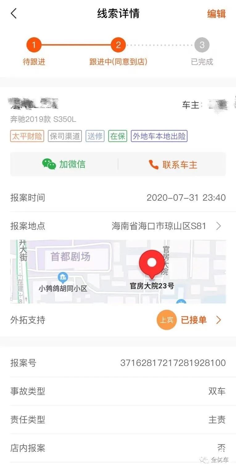 車百靈之鈑噴管家針對事故外拓業(yè)務(wù)實現(xiàn)了全流程管理,并提供賦能工具幫業(yè)務(wù)員提升客戶體驗,提高搶單成功率。這項功能配備了全城事故熱點地圖以及外勤精準導(dǎo)航,一鍵定位事故坐標,為事故外拓全過程監(jiān)控提供了極便利的工具,同時也為外拓搶單決策提供了有力的支持。