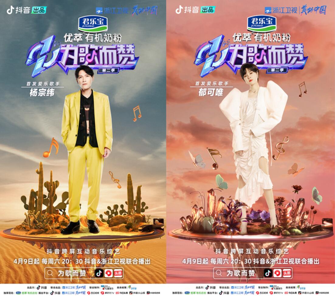 4月9日起每周六20:30,由抖音出品的跨屏互動(dòng)音樂(lè)綜藝君樂(lè)寶優(yōu)萃有機(jī)奶粉《為歌而贊》第二季即將在抖音和浙江衛(wèi)視播出,西瓜視頻、鮮時(shí)光TV、今日頭條、抖音火山版、抖音極速版聯(lián)合播出!節(jié)目自官宣定檔后便大受關(guān)注,歌手陣容與升級(jí)后的節(jié)目舞美還有節(jié)目創(chuàng)新的賽制與現(xiàn)場(chǎng)互動(dòng)玩法,使新一季更加值得期待。明晚《為歌而贊》第二季正式開(kāi)播,首發(fā)愛(ài)樂(lè)歌手雷佳、楊宗緯、郁可唯、袁婭維、馬思唯、柳爽、王赫野以及愛(ài)樂(lè)摯友王嘉爾,將為觀眾獻(xiàn)上多場(chǎng)音樂(lè)舞臺(tái)。