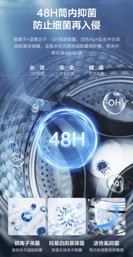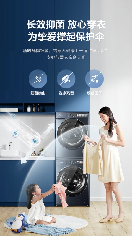 在完成衣物潔凈清洗后,三重殺菌也是小天鵝本色系列洗烘套裝的優(yōu)勢(shì)所在。在洗滌過(guò)程中,藍(lán)氧特漬凈技術(shù)可以快速分解有機(jī)微生物,實(shí)現(xiàn)深層主動(dòng)殺滅細(xì)菌,配合備受好評(píng)的銀離子殺菌技術(shù),不僅能在內(nèi)筒形成48H長(zhǎng)效抑菌保護(hù)膜,同時(shí)還可以達(dá)到99.99%殺菌率。在干衣過(guò)程中,UV紫外線360°動(dòng)態(tài)反射穿透衣物纖維,全面射殺藏匿在深處細(xì)菌。三重除菌讓孩子和家人時(shí)刻享受健康衣物帶來(lái)的滿滿幸福感。