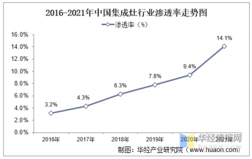 中國(guó)集成灶行業(yè)潛力巨大,伴隨集成灶逐步放量,集成灶行業(yè)滲透率由2016年的3.2%提升至2021年的14.1%;2015至2021年,我國(guó)集成灶行業(yè)零售量從57萬(wàn)臺(tái)快速增長(zhǎng)至304萬(wàn)臺(tái),預(yù)計(jì)2023年有望超過400萬(wàn)臺(tái),達(dá)411萬(wàn)臺(tái);2021年我國(guó)集成灶行業(yè)實(shí)現(xiàn)零售額約256億元,預(yù)計(jì)2022年將突破300億元。