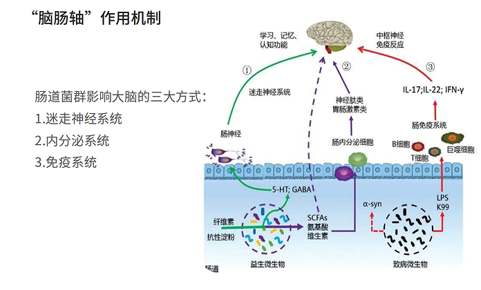 整個腸道微生態(tài)系統(tǒng)和大腦之間有著千絲萬縷的聯(lián)系,改善腸道的微生態(tài),有利于改善大腦的狀況,提升認知。