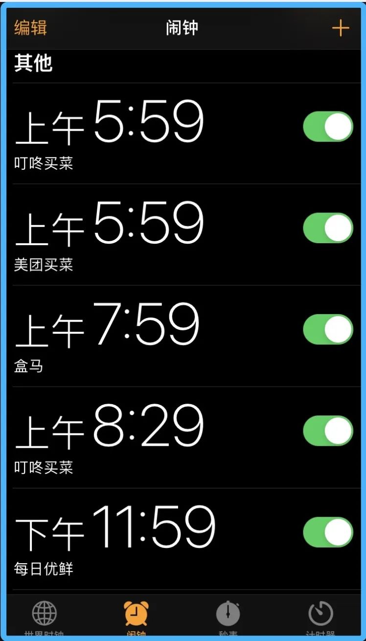 高靜為“搶菜”預(yù)定多個鬧鐘