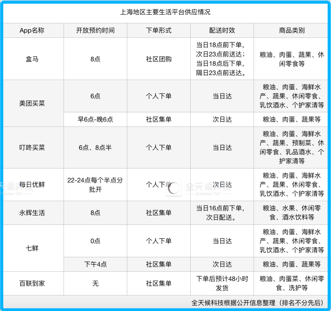 與之相反的是,包括盒馬、叮咚買菜、美團(tuán)買菜、每日優(yōu)鮮、本來生活網(wǎng)等在內(nèi)的多家生鮮電商平臺幾乎都向全天候科技表示,目前正在全力保供,已經(jīng)加大了進(jìn)貨量,庫存充足、物價穩(wěn)定,能滿足居民基本生活需求。