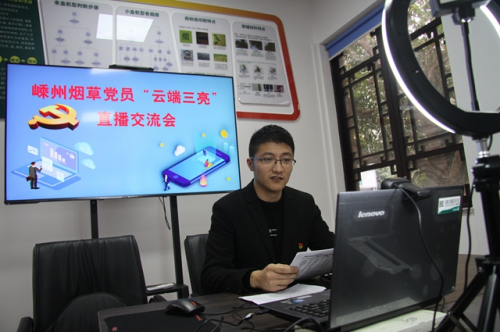 圖為:嵊州市煙草專賣局青年黨員通過直播方式上黨課