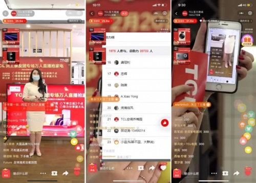 2月20日,TCL在愛逛直播上開始了自己的直播首秀,開播不到十分鐘銷售額便超過150萬,單場(chǎng)銷售近千萬。