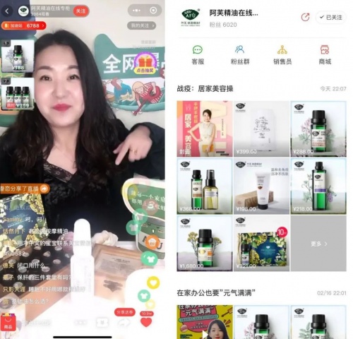 在疫情期間,阿芙精油也臨時(shí)組建了自己的直播項(xiàng)目組。在有贊直播電商解決方案的支持下,阿芙精油迅速調(diào)動(dòng)了全國(guó)各地400個(gè)導(dǎo)購(gòu)員和15個(gè)培訓(xùn)師,開始了線上直播,在情人節(jié)當(dāng)天實(shí)現(xiàn)了單場(chǎng)1個(gè)小時(shí)8.4萬的銷售額,轉(zhuǎn)化率高達(dá)12%。