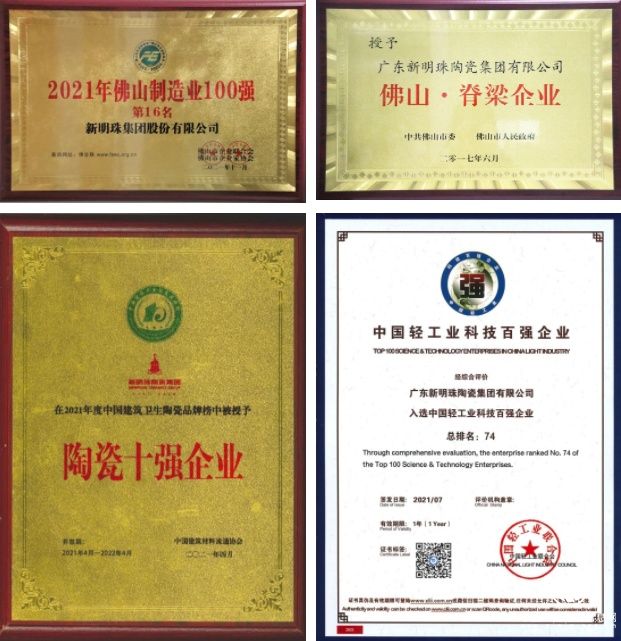 集團(tuán)多次被評(píng)為佛山制造業(yè)百?gòu)?qiáng)、中國(guó)輕工業(yè)科技百?gòu)?qiáng)企業(yè)、陶瓷十強(qiáng)企業(yè),榮膺“佛山?脊梁企業(yè)”等稱號(hào)。