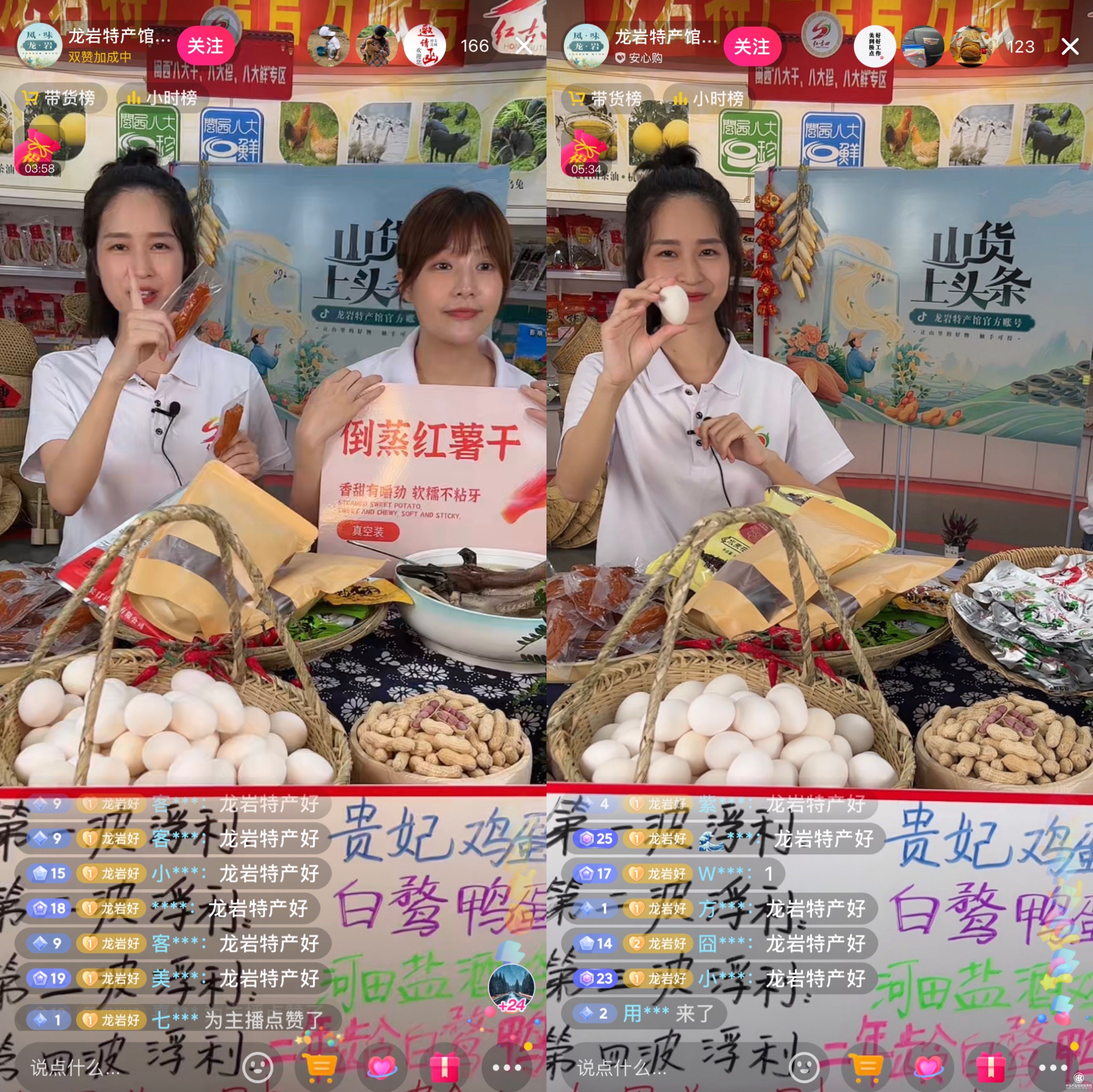 4月24日,抖音@龍巖特產(chǎn)館 官方帳號(hào)首次帶貨直播,由當(dāng)?shù)囟辔恍罗r(nóng)人進(jìn)入直播間推薦家鄉(xiāng)品質(zhì)山貨,為全國用戶介紹連城紅心地瓜干、連城白鴨、龍巖花生等國家地理標(biāo)志產(chǎn)品和地方特色農(nóng)品。這場近3個(gè)小時(shí)的直播吸引了數(shù)萬消費(fèi)者駐足,直播間累計(jì)獲贊45.7萬次。