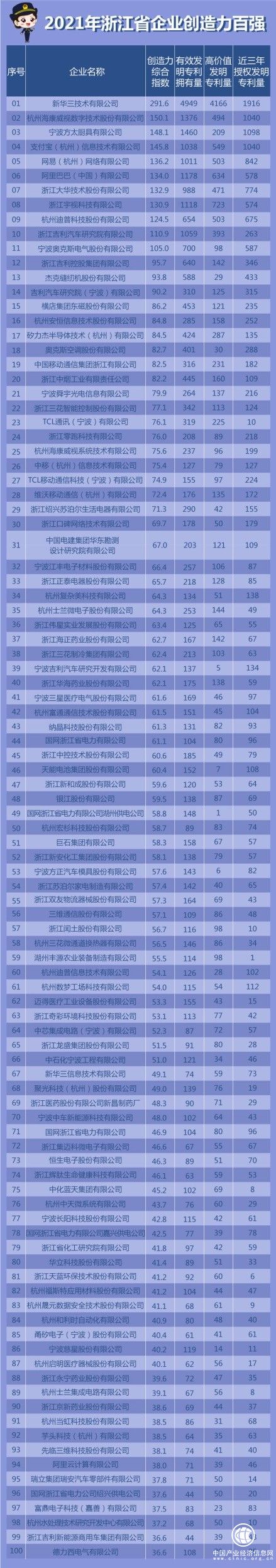 4月27日,浙江省市場監(jiān)管局(省知識(shí)產(chǎn)權(quán)局)發(fā)布省創(chuàng)造力百強(qiáng)企業(yè)榜單。
