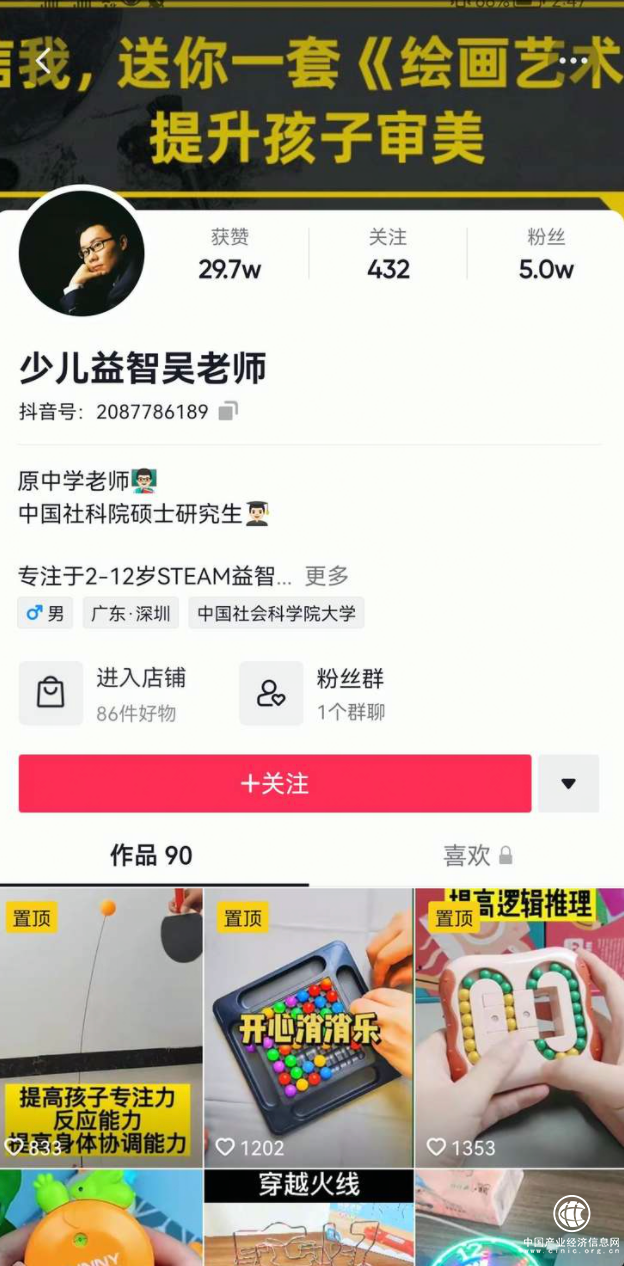 在抖音創(chuàng)業(yè)之前,吳老師有過10年的傳統(tǒng)電商運(yùn)營經(jīng)驗(yàn),做的也是兒童益智玩具。更早之前,他做過一段時(shí)間中學(xué)老師;目前,他還是中科院的在職研究生。