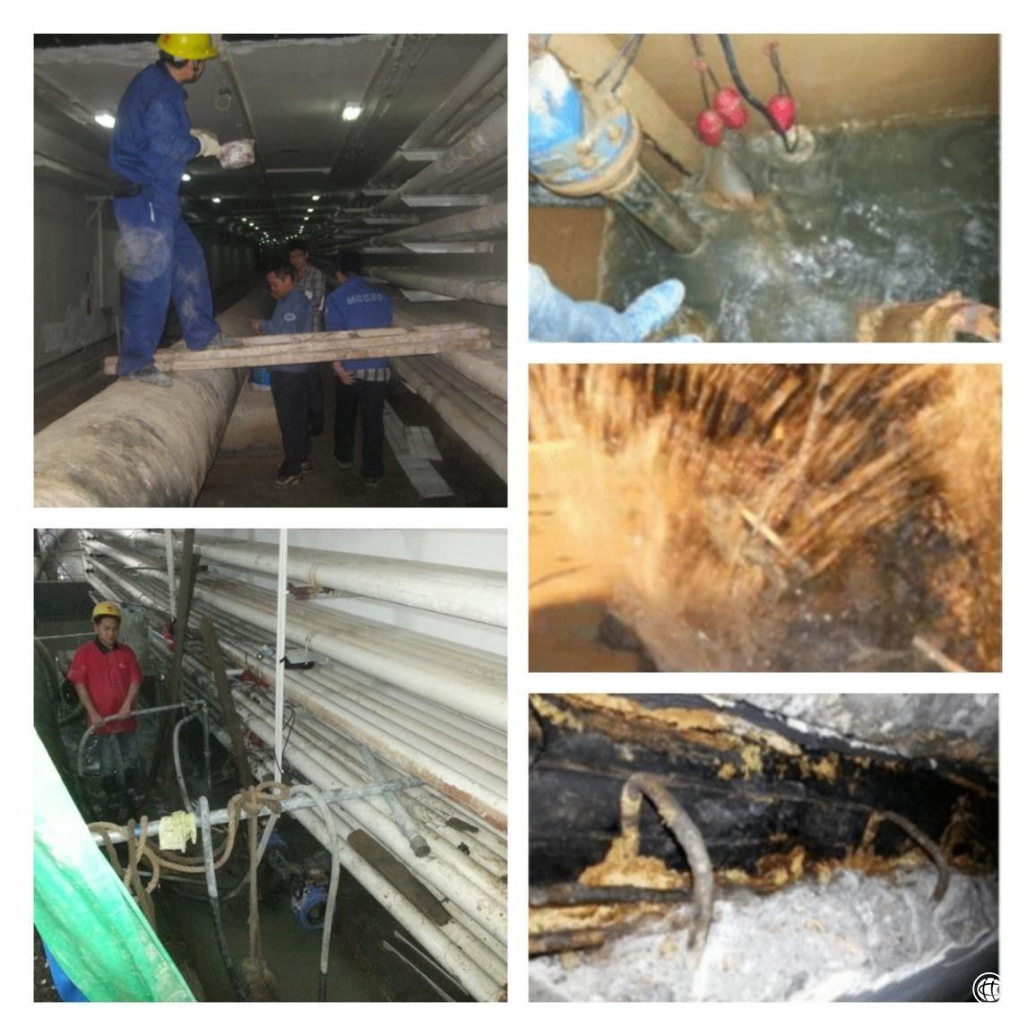該管廊四周環(huán)南海,全長近40公里,海水壓力大,治理前嚴(yán)重透水,臺實(shí)緊急組建施工隊伍奔赴現(xiàn)場,現(xiàn)場大面積滲漏灌入瓢潑大水,積水及腰,經(jīng)過臺實(shí)人不辭勞苦搶險治理,管廊功能得以恢復(fù)如初。