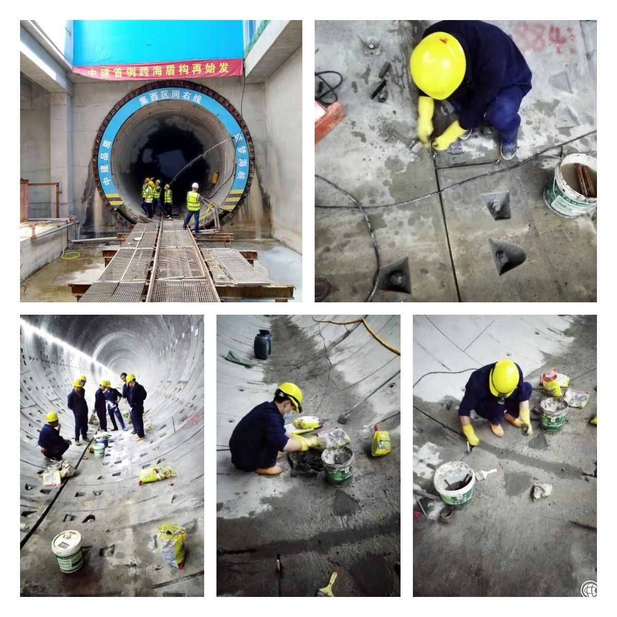 據(jù)了解該項目施工條件十分復(fù)雜,跨海段施工地層沉降難以控制,海底覆蓋層坍塌風(fēng)險極高,在此線路施工過程中還存在著穿越砂層、淺覆土段、孤石段以及下穿綜合管廊等構(gòu)筑物及管線等眾多施工難點(diǎn),這是中國首例跨海盾構(gòu),對抗?jié)B漏和防腐要求高,臺實(shí)工程團(tuán)隊經(jīng)過現(xiàn)場勘察,很快就有了施工方案 ,在進(jìn)行海底隧道滲漏水堵漏修復(fù)的同時,根據(jù)海中盾構(gòu)隧道管片結(jié)構(gòu)高防腐蝕的要求,對管片拼縫進(jìn)行嵌縫和手孔部位進(jìn)行封堵以滿足防鹽霧防腐技術(shù)問題,先采用含鋅量高達(dá)96%以上的富鋅涂料噴涂螺絲進(jìn)行防銹蝕處理,再用AEA微膨脹高強(qiáng)水泥對螺絲孔洞進(jìn)行封堵處理,最終圓滿完成該項目,臺實(shí)人的施工質(zhì)量也得到了各方的認(rèn)可。