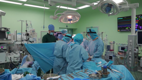 經(jīng)大連醫(yī)科大學(xué)附屬第二醫(yī)院多學(xué)科專家會診、論證,吳海波教授決定為患者進行人工心臟手術(shù)。為確保此次人工心臟植入手術(shù)萬無一失,心外科聯(lián)合麻醉科、手術(shù)室、體外循環(huán)、心臟外科監(jiān)護室、超聲科、康復(fù)醫(yī)學(xué)科、臨床營養(yǎng)科等多學(xué)科團隊進行培訓(xùn)、演練,對手術(shù)過程中每一個環(huán)節(jié)進行細致推演,制定安全有效的手術(shù)方案和各種應(yīng)急預(yù)案。 4月8日下午兩點,手術(shù)正式開始。對于這種ECMO輔助下的重度心力衰竭患者,麻醉及術(shù)中管理要求極為嚴苛,麻醉科肖昭揚主任帶領(lǐng)麻醉團隊平穩(wěn)地完成麻醉誘導(dǎo)。首先由姜東炬主任進行冠脈造影術(shù),吳海波主任根據(jù)造影結(jié)果為患者進行了冠脈動脈旁路移植手術(shù)。隨后,體外循環(huán)下的人工心臟植入手術(shù)正式開始。