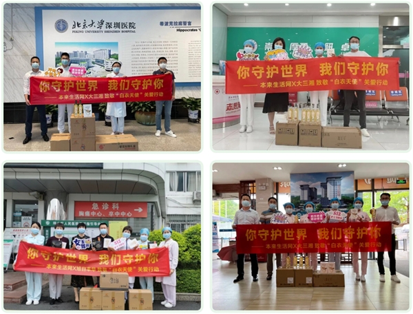 ▲本來生活網(wǎng)攜合作伙伴向深圳醫(yī)護工作者贈送愛心物資