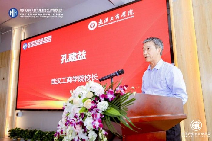 武漢工商學(xué)院校長孔建益在致辭中對各位嘉賓來到學(xué)校表示熱烈歡迎。他說,培養(yǎng)適應(yīng)和引領(lǐng)現(xiàn)代產(chǎn)業(yè)發(fā)展的高素質(zhì)應(yīng)用型、復(fù)合型、創(chuàng)新型人才,是高等教育支撐經(jīng)濟(jì)高質(zhì)量發(fā)展的必然要求,是推動高校分類發(fā)展、特色發(fā)展的重要舉措。為深化產(chǎn)教融合,提高行業(yè)企業(yè)參與辦學(xué)程度,促進(jìn)教育鏈、人才鏈與產(chǎn)業(yè)鏈、創(chuàng)新鏈有機(jī)銜接,提高學(xué)校教育質(zhì)量,提升大學(xué)生就業(yè)創(chuàng)業(yè)水平,培養(yǎng)更專業(yè)的商務(wù)人才,實(shí)現(xiàn)校企雙方財(cái)經(jīng)人才培養(yǎng)模式的創(chuàng)新和互動雙贏,武漢工商學(xué)院合和會計(jì)與審計(jì)行業(yè)學(xué)院應(yīng)運(yùn)而生。