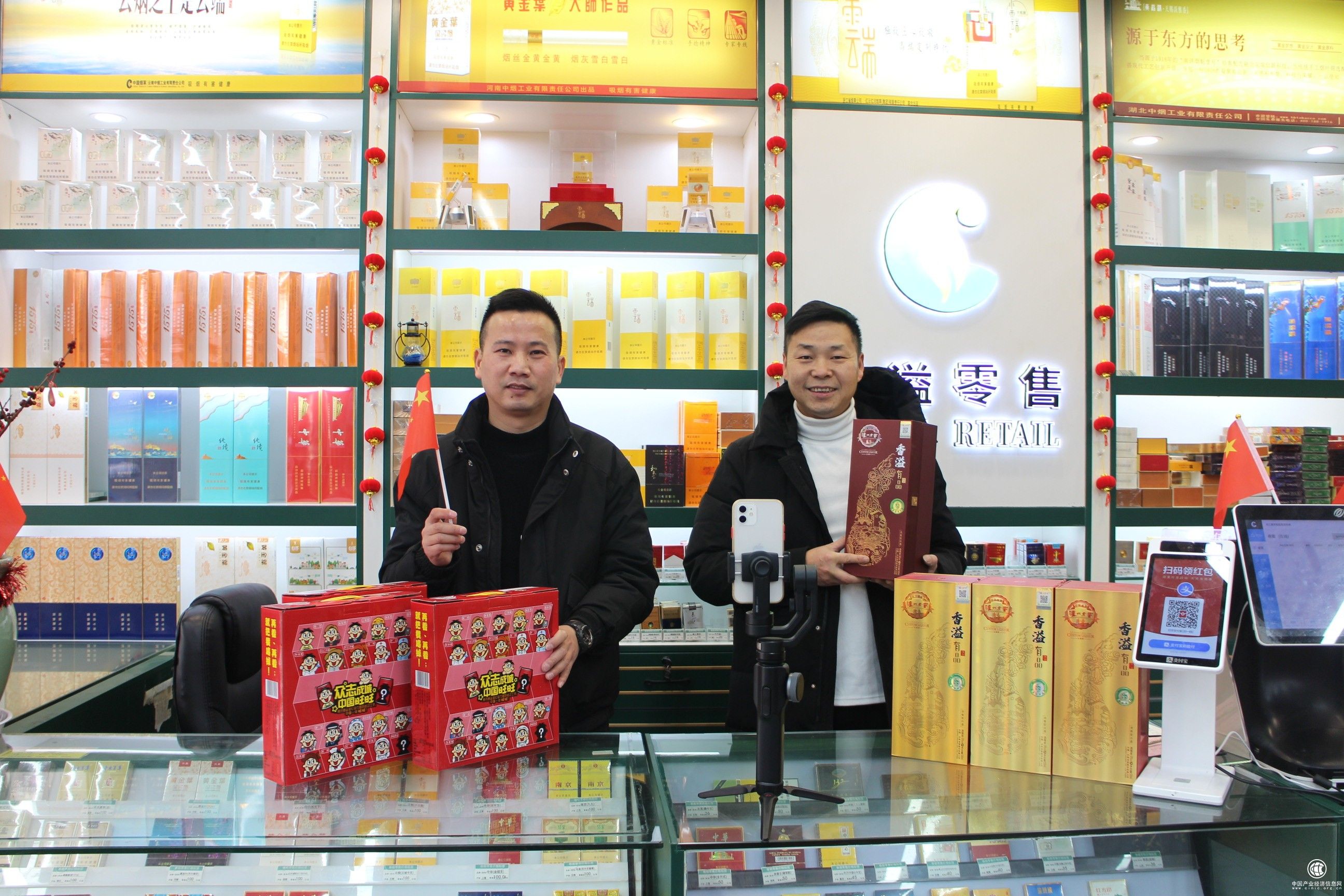 圖為客戶(hù)經(jīng)理與零售戶(hù)共同開(kāi)展年貨節(jié)直播帶貨(唐赟秋攝)