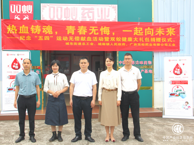 從右至左:來賓市中心血站副站長楊長思,來賓市中心血站黨支部書記、站長黃升文,雙蟻藥業(yè)工會主席、副總經(jīng)理程敏光,雙蟻藥業(yè)黨支部書記、副總經(jīng)理曾秋菊,雙蟻藥業(yè)行政部經(jīng)理凌佩玲