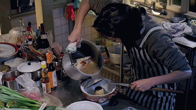 這邊在水池里洗著菜,身后鍋里的油開了,轉(zhuǎn)身端菜下鍋大火猛炒,霎時油煙四溢、熱氣蒸騰。油沫、菜屑濺得到處都有,水漬滿地,做飯的人汗水淋漓......一頓中餐就是一場戰(zhàn)事。