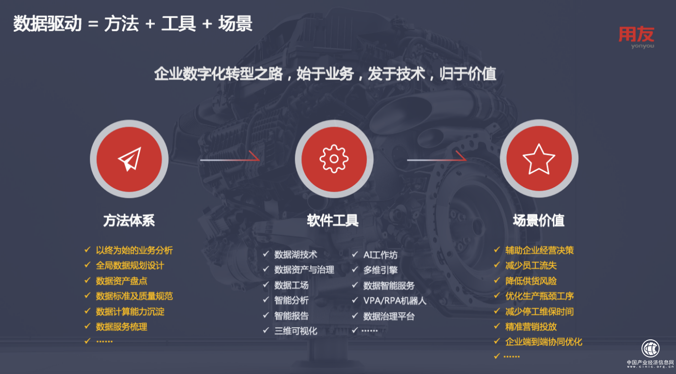 用友的數(shù)據(jù)中臺打通產(chǎn)業(yè)鏈上下游,通過數(shù)據(jù)賦能企業(yè)智慧運營,實現(xiàn)企業(yè)的智能營銷、智能生產(chǎn)、智能采購、智能供應鏈,形成智慧產(chǎn)業(yè)鏈。