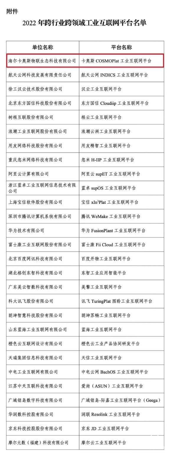 日前,工信部公布2022年跨行業(yè)跨領(lǐng)域工業(yè)互聯(lián)網(wǎng)平臺名單。卡奧斯COSMOPlat工業(yè)互聯(lián)網(wǎng)平臺再居榜首,連續(xù)四年蟬聯(lián)“國家隊”第一。