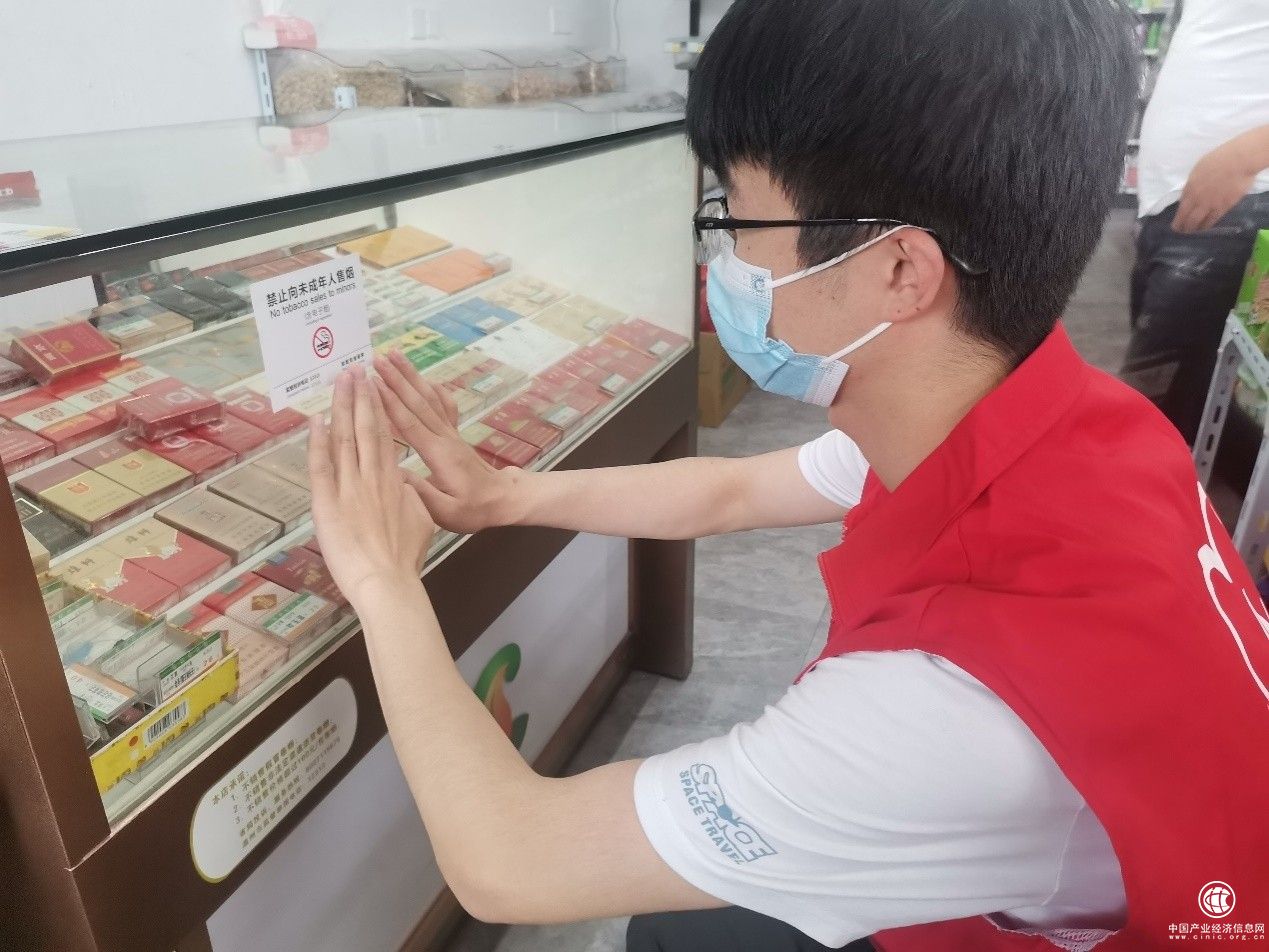 圖為 “香溢”志愿服務(wù)隊(duì)張貼禁止向未成年人銷售卷煙售標(biāo)識(shí)規(guī)定