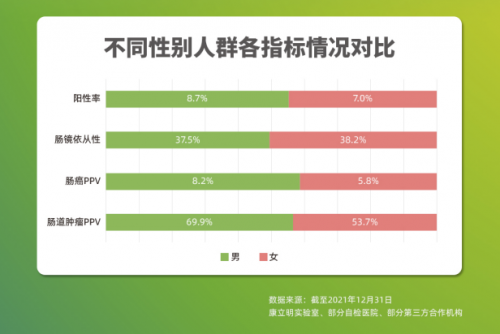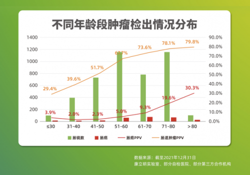 截至2021年12月,作為持續(xù)披露真實(shí)世界應(yīng)用數(shù)據(jù)的腸癌糞便基因檢測產(chǎn)品,長安心?共完成33萬例前瞻性篩查,其中175528例篩查數(shù)據(jù)可追溯,12114例受檢者長安心?檢測結(jié)果陽性(陽性率6.9%),其中4970例長安心?檢測結(jié)果陽性的受檢者進(jìn)行了腸鏡復(fù)查(腸鏡依從性41.0%),一共發(fā)現(xiàn)3408例需要治療的受檢者,其中755例腸癌,1444例腺瘤,1209例息肉。長安心?對腸道腫瘤的陽性預(yù)測值(PPV)為68.6%(其中腸癌的陽性預(yù)測值為15.2%),來自國家科技部項(xiàng)目的數(shù)據(jù)顯示,長安心?的陰性預(yù)測值更是高達(dá)99.9%。