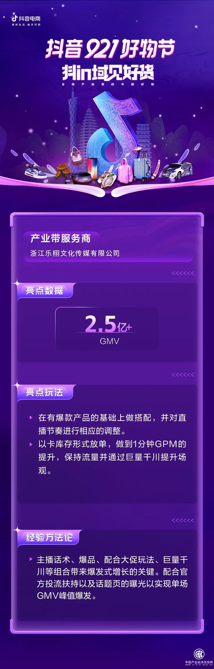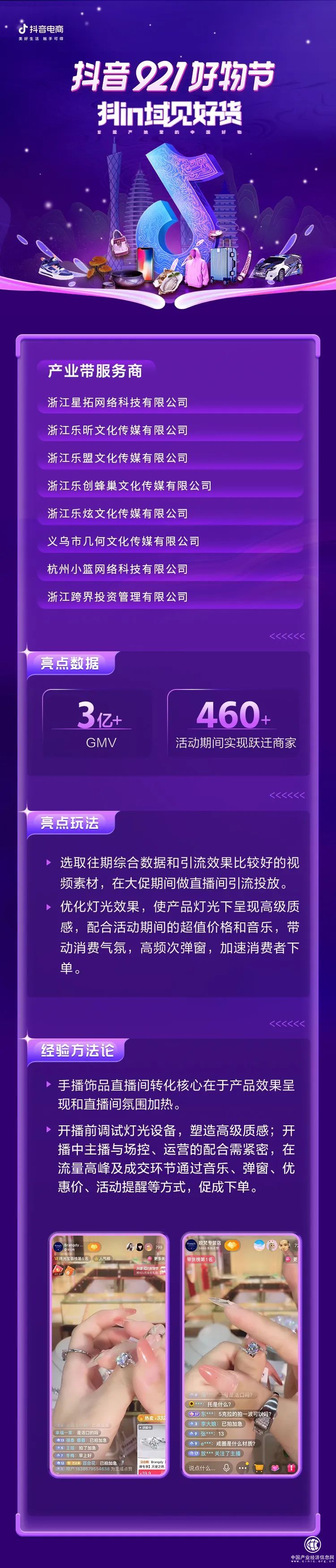 隨著全域興趣電商不同玩家的涌入,產(chǎn)業(yè)帶商家、服務(wù)商與達(dá)人,形成了三者之間相輔相成的穩(wěn)固關(guān)系。為了激勵三者互促關(guān)系,「抖in域見好貨」推出了產(chǎn)業(yè)帶名片PK大賽,通過百場商家動員大會,向全國產(chǎn)業(yè)帶商家開放報(bào)名,借助流量、激勵與傳播多方優(yōu)勢,打造產(chǎn)業(yè)帶生意助推器: