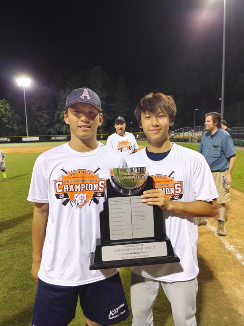 在這個火熱的賽季,同樣表現(xiàn)亮眼的還有另一批來自DC的球員。在Cal Ripken 大學(xué)夏季聯(lián)賽(CRCBL)中,馮清揚和王宇宸代表出戰(zhàn)的Alexandria Aces隊在七支高質(zhì)量參賽隊伍中脫穎而出,擊敗衛(wèi)冕冠軍Bethesda Big Train隊,問鼎冠軍寶座,這也是該球隊15年歷史上的首次冠軍。