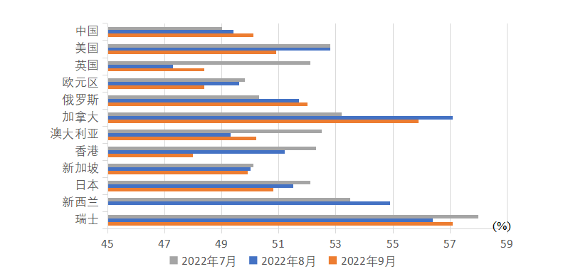 圖7 2022年三季度各國制造業(yè)PMI變化
