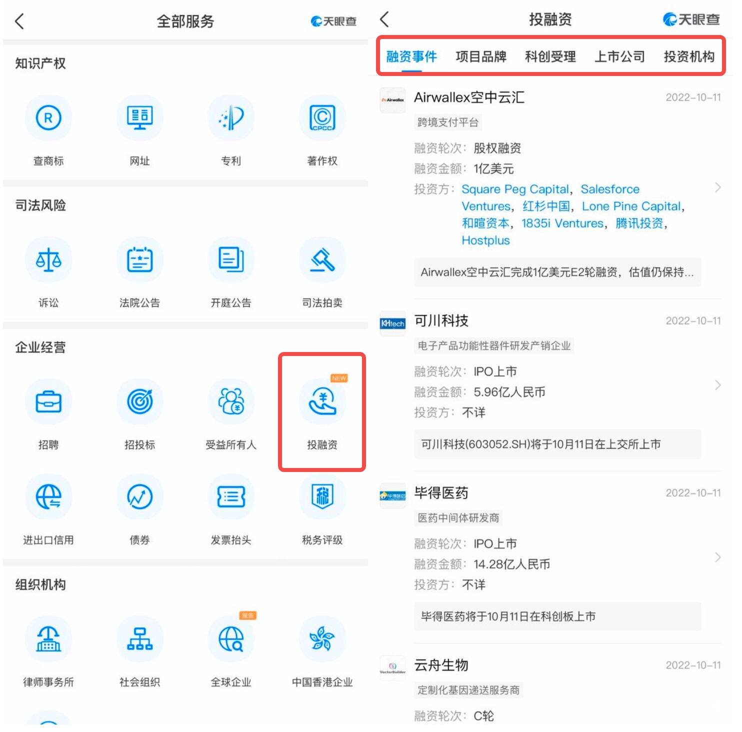 胡總監(jiān)提醒,對(duì)于TOB銷(xiāo)售而言,以較低的成本,找到有良好現(xiàn)金流、有買(mǎi)單能力的客戶(hù),比如說(shuō)剛剛獲得融資的客戶(hù),是形成訂單的“訣竅”所在,這樣會(huì)節(jié)省大量時(shí)間成本。天眼查的“投融資”功能,整合了融資事件、項(xiàng)目品牌、投資機(jī)構(gòu)等信息披露功能,便于用戶(hù)及時(shí)掌握近期最大規(guī)模投融資事件、各省市地區(qū)項(xiàng)目品牌融資情況、熱門(mén)投融資行業(yè)分布、不同投資機(jī)構(gòu)青睞賽道等信息,充分滿(mǎn)足了銷(xiāo)售前期盡調(diào)的需要。打開(kāi)天眼查APP,經(jīng)由首頁(yè)進(jìn)入全部服務(wù)即可使用。