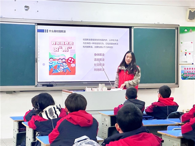在“中學(xué)生防校園欺凌”主題授課中,志愿者以反欺凌影視作品切入,利用專業(yè)知識(shí)和經(jīng)驗(yàn),結(jié)合生動(dòng)案例和互動(dòng)問答,向同學(xué)們?cè)敿?xì)講解了校園欺凌的特征、危害性和應(yīng)對(duì)方法,鼓勵(lì)同學(xué)勇于對(duì)校園欺凌說“不”,勇敢尋求幫助和支持,既不做施暴者,更不做受害者,也不做旁觀者。