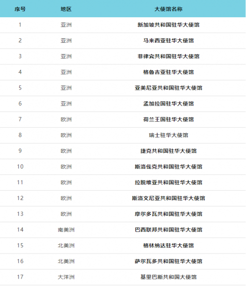 17個(gè)大使館: