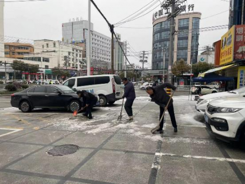 在人行道、十字路口、小區(qū)出入口等重點區(qū)域,縣局紅燭服務(wù)隊黨員與社區(qū)工作人員、志愿者齊心協(xié)力開展清雪除冰工作。天氣寒冷,大家用鐵鍬邊敲邊鏟,一點點“攻克”堅硬厚實的冰層,在凍雪中鏟出一條條“安心路”,收到周邊商戶熱情送來的熱水?!叭罕娪行枰?,黨員責(zé)無旁貸?!边B日來,縣局黨員身影活躍在社區(qū)、村落,在最冷的天氣里帶來最貼心的服務(wù)。