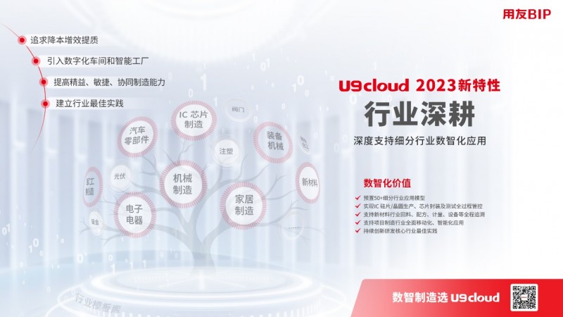 從去年開始,U9 cloud進(jìn)一步拓展了業(yè)務(wù)范圍,開始為電子&芯片、新能源、家居等離散制造行業(yè)提供更加深入的行業(yè)化場景應(yīng)用和定制化解決方案。U9 cloud憑借卓越的技術(shù)實(shí)力和豐富的行業(yè)經(jīng)驗(yàn),致力于為更多行業(yè)客戶提供更高效、更智能的數(shù)智化轉(zhuǎn)型解決方案。