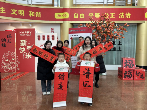 書法寄廉,引領(lǐng)廉潔清風(fēng)。“這份春聯(lián)很特別,既有濃濃的新春祝福,也有溫馨的廉潔提醒,一貼就是一年,每天耳濡目染受熏陶?!薄傲鞖v也不錯(cuò),又實(shí)用又喜慶?!?月5日,松溪縣局(分公司)組織開展“風(fēng)清氣正迎新年”廉潔文化活動(dòng),邀請(qǐng)書法老師給干部職工“寫廉聯(lián)、送廉歷”,活動(dòng)一開始就得到了干部職工的熱烈響應(yīng)?,F(xiàn)場(chǎng)還設(shè)置了廉潔打卡點(diǎn)和廉潔寄語(yǔ)樹,職工群眾們紛紛寫下廉潔寄語(yǔ),并在樹下打卡合影留念,伴隨著快門的咔嚓聲,一張張幸福的畫面在此刻定格,傳遞新春的希望和祝福,也讓“廉聯(lián)、廉歷、廉語(yǔ)、廉照”成為廉政文化宣傳的“軟載體”。